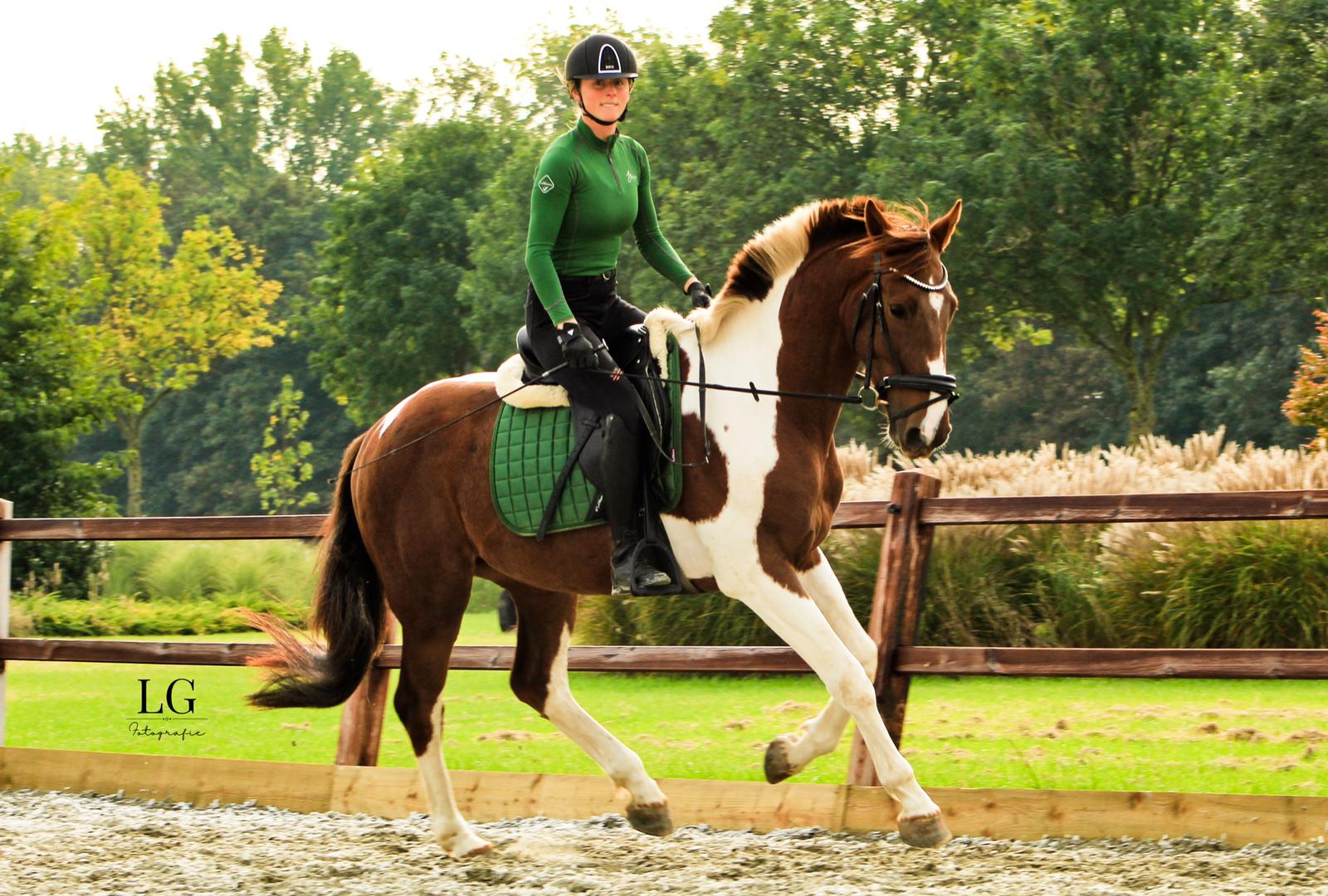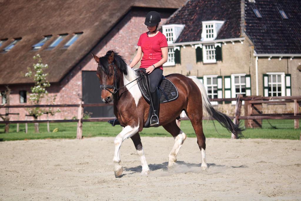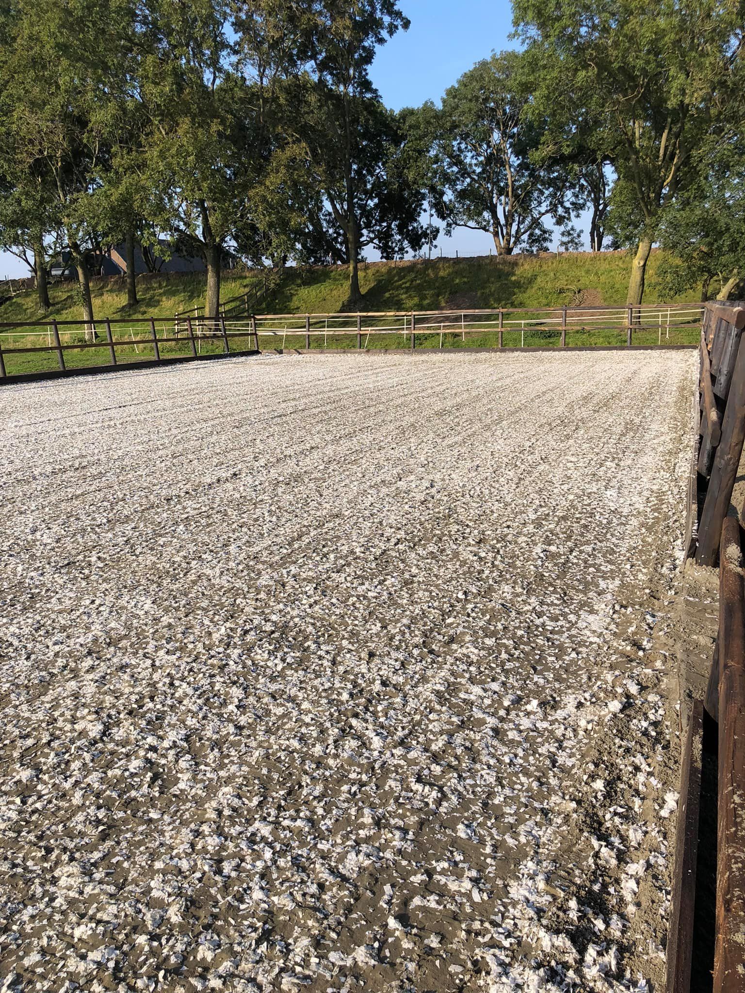 Je kunt gebruik maken van een fijne, altijd droge buitenbak 20 x 40 op loopafstand en op ons eigen terrein hebben we een super bak 15 x 30 met polyvlok en het beste zand, s' avonds verlicht. In de buurt hier heb je heel veel uitrijmogelijkheden. We maken graag samen buitenritjes en blijven na de verzorging van onze paarden gezellig nog met z'n allen op stal.