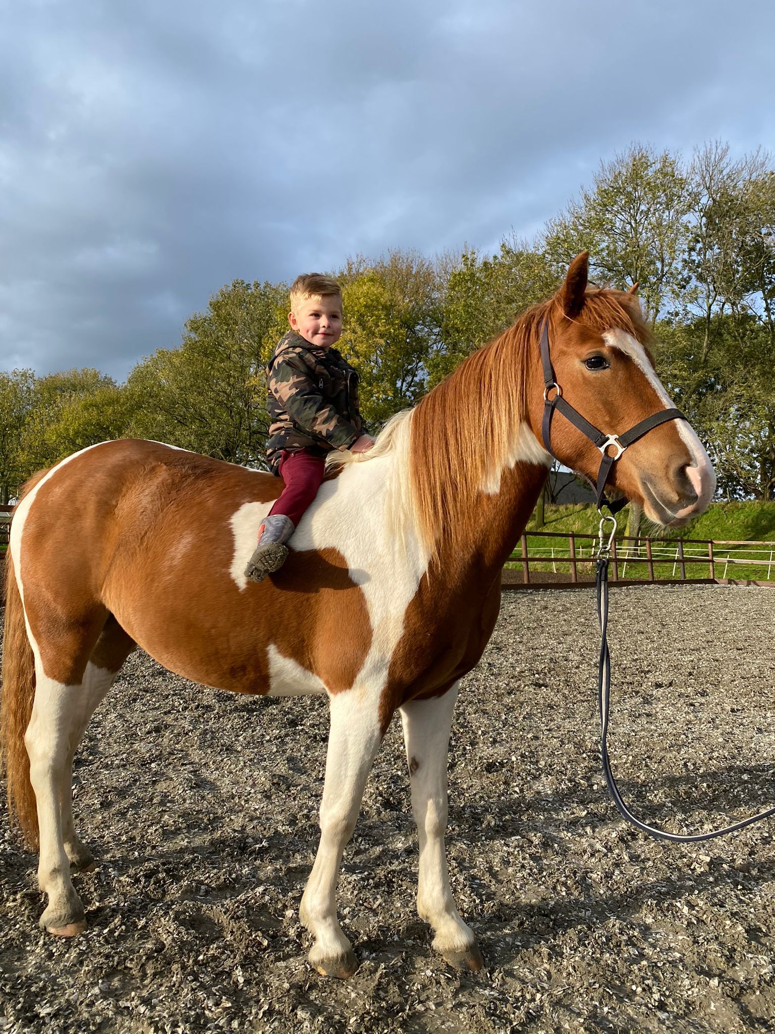 We hebben haar zelf zadelmak gemaakt 15 maanden geleden, zonder zadel zelfs en ook hierbij geen pas verkeerd. Direct ook al lief voor kindjes. Geen sensibel paard, niet onderdanig in de omgang, eerder wat eigenwijs, wel heel grappig.