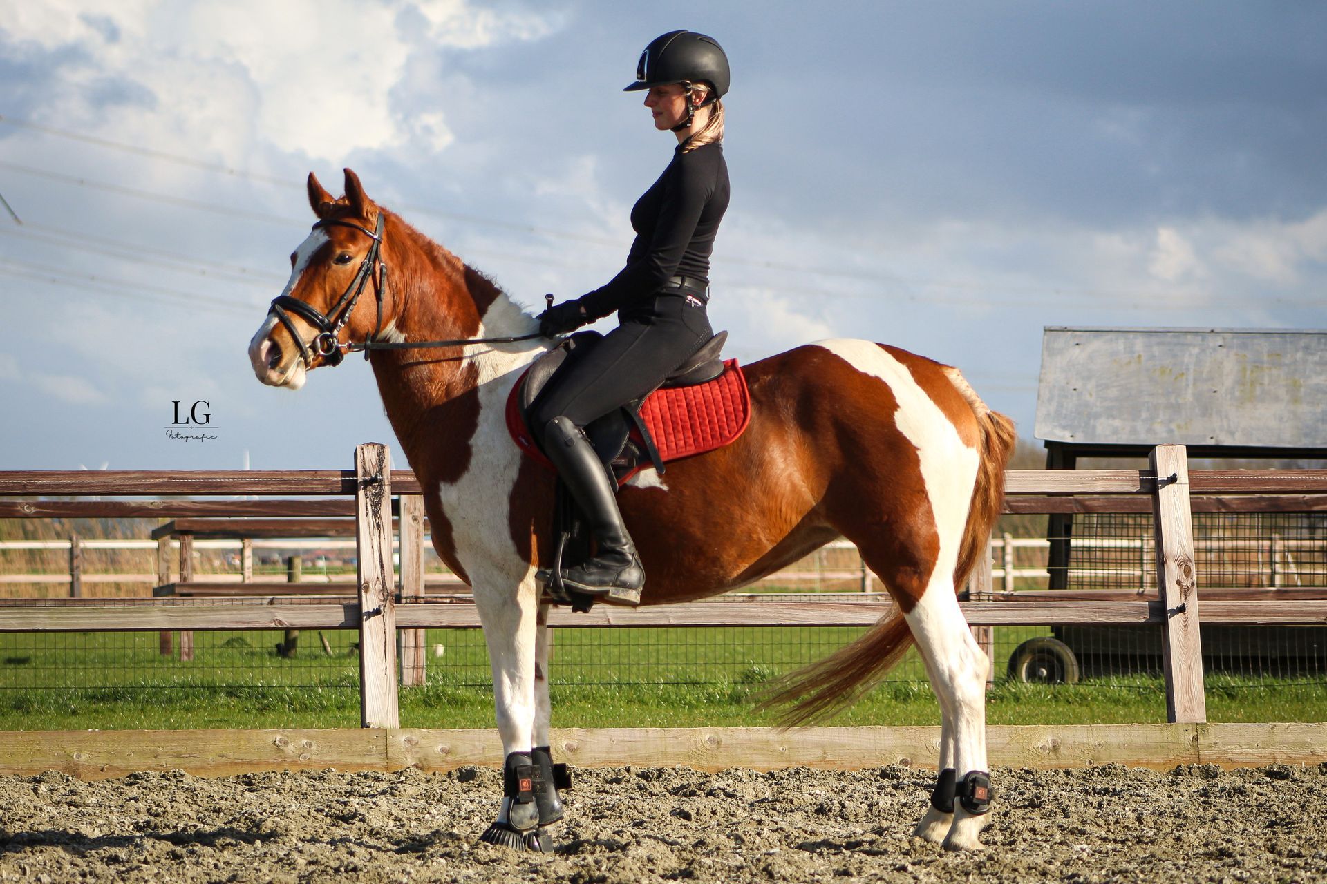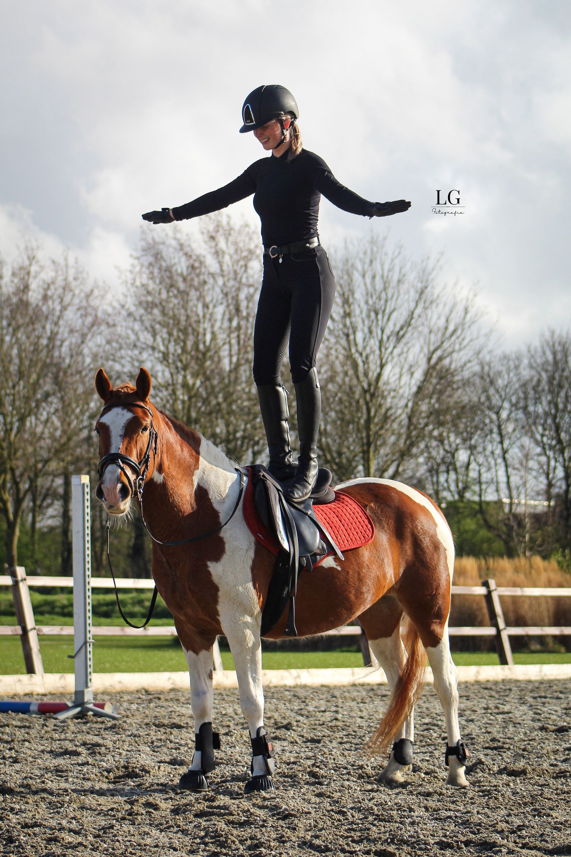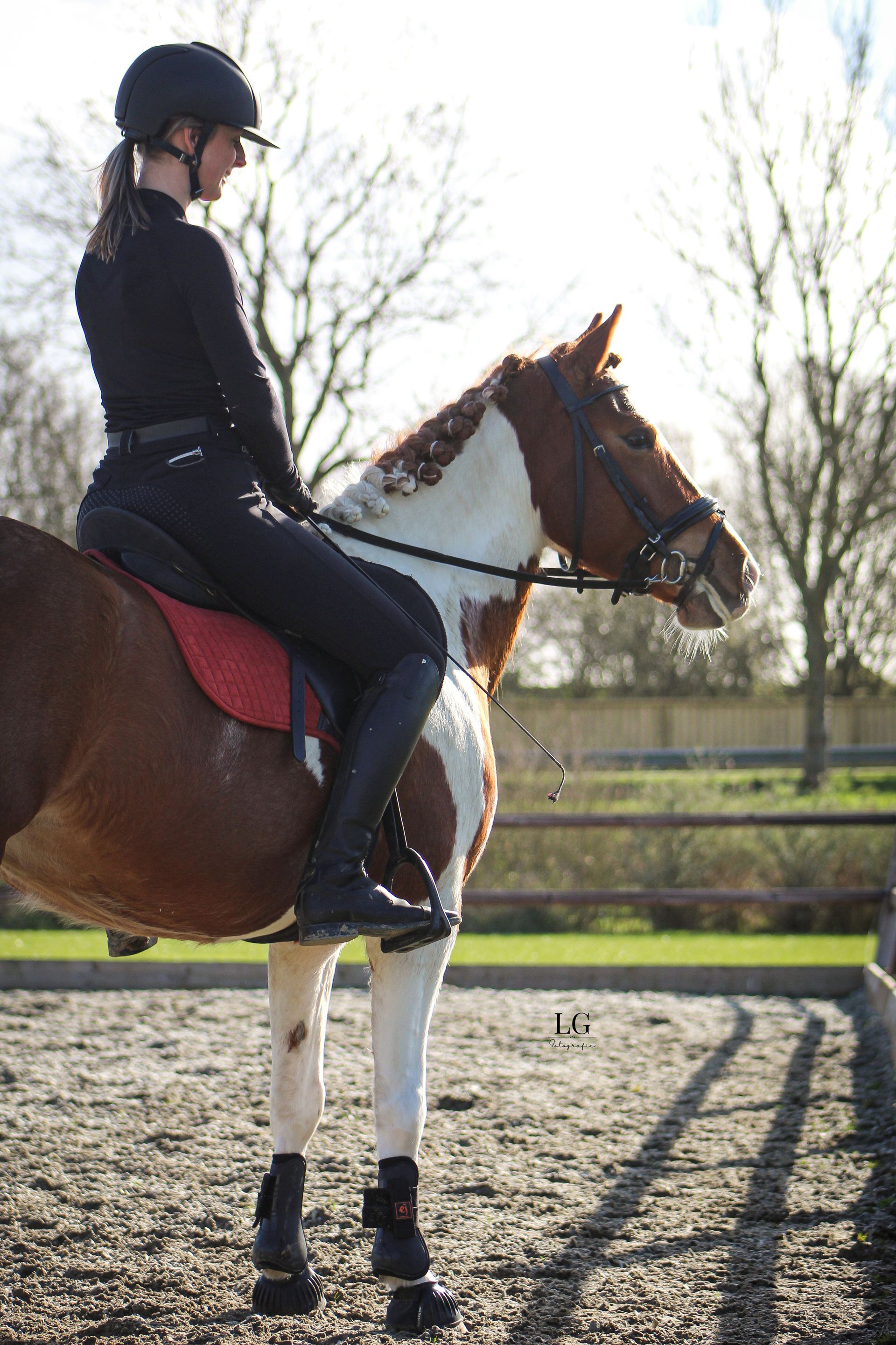 Met dit paardje kan je nog heel erg groeien en leren door haar koele karakter. Zo gaat ze samen of alleen op buitenrit, mee op clinic of wedstrijd, is ze ook voor groot verkeer niet bang, heel gemakkelijk zelf te laden op de trailer.